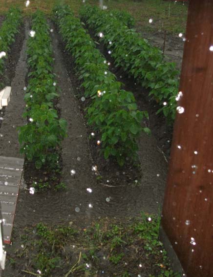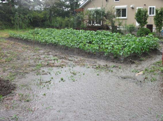 | 6月〜9月の間、ほぼ毎日のように雷雨が発生しました。培土を何度も行い畦丈を高くする必要があります。 雨が降ると畝と畝の間は川のようになります。 |