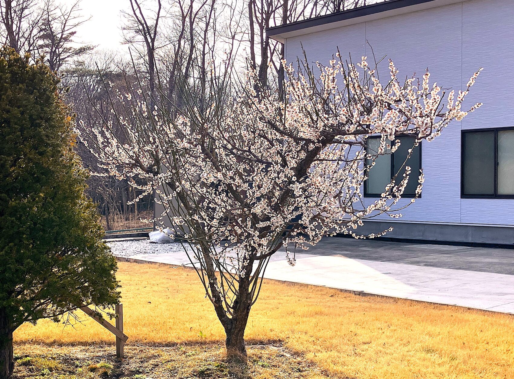 梅の満開が大幅に遅れた昨年より10日早く、那須科学歴史館の梅が満開になりました。1~2月は寒い冬が続きましたが、3月後半になると暖かい日が続き、那須科学歴史館の枝垂れ桜も開花しそうな感じです。